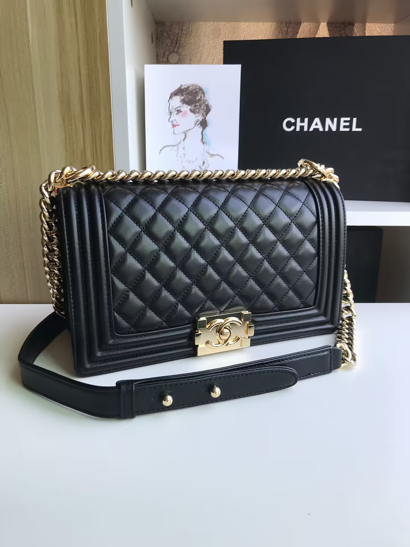 Ch**el 22 Handbag Large 22S Calfskin Black