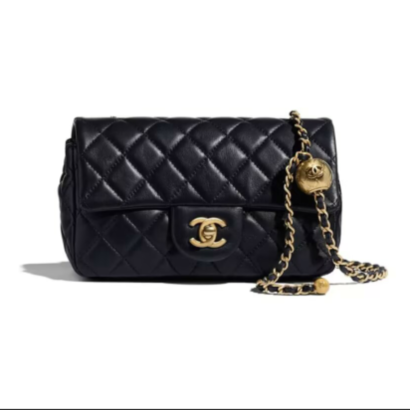 Ch**el Flap Bag Top Handle Quilted Grained Calfskin Gold-tone Small Black