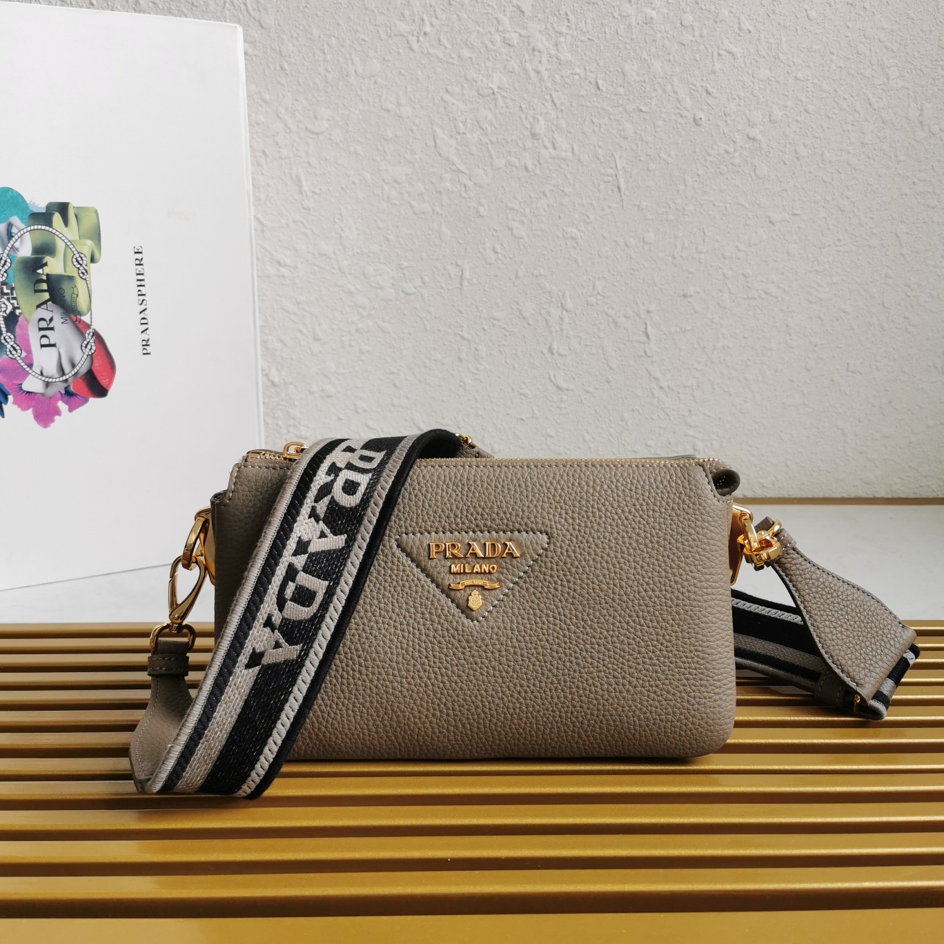 Pra*a Large Symbole Embroidered Fabric Handbag Baltic Blue/Chalk White