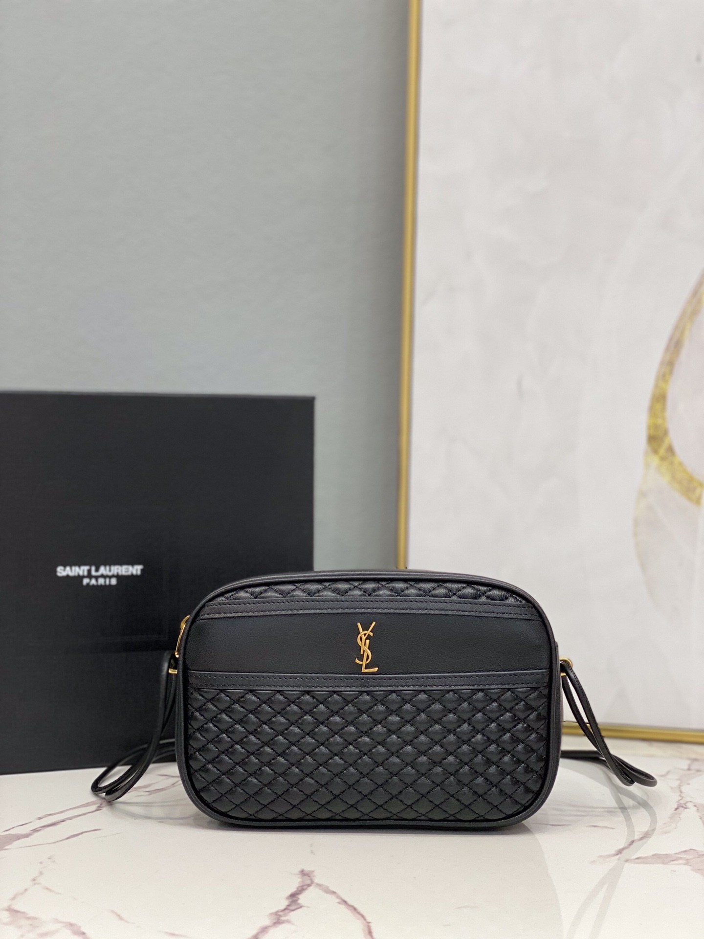 Sa1nt Lau*nt Vicky Small Quilted Velour Chain Shoulder Bag