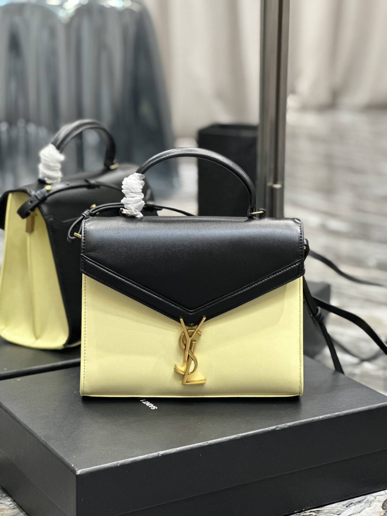 Sa1nt Lau*nt Le Fermoir Small Top Handle Bag In Shiny Leather
